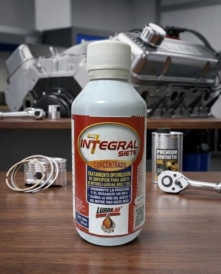 Integral-7 es una formulación especial de agentes modificadores de fricción y elementos orgánicos polares que se adhieren al metal para reducir la fricción, el calor y el desgaste. Aditivo para combustión interna para mejorar el aceite de motor a Gasolina, Diesel, y/o Gas.
